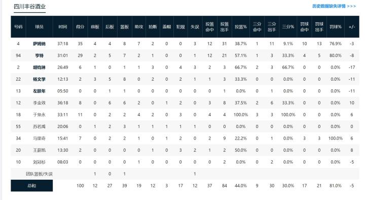 四川丰谷酒业爱德蒙-萨姆纳35分5板4助3断,马库斯-亨特29分2板2助,于枭永11分1板3助1断。