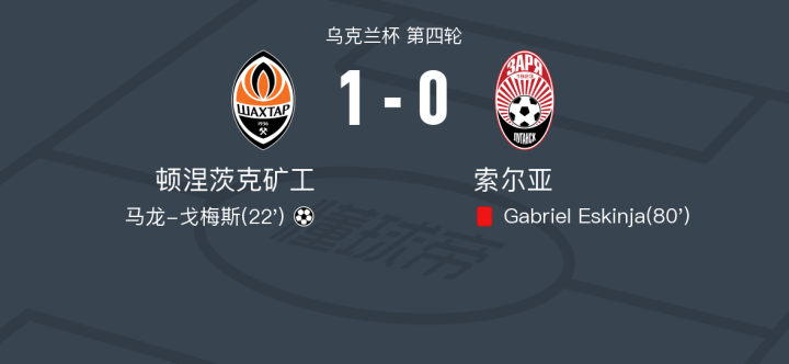 顿涅茨克矿工1-0索尔亚,马龙-戈梅斯制胜球