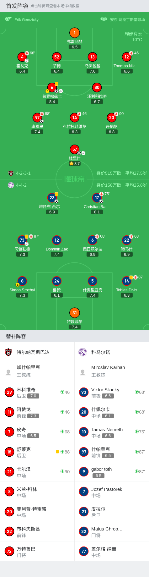 特尔纳瓦斯巴达3-2科马尔诺,杜里什、奥福里破门