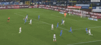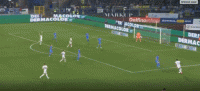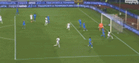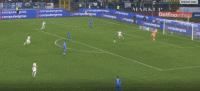 第12分钟,迪马尔科开出任意球发生折射,球被瓦斯奎兹扑出
