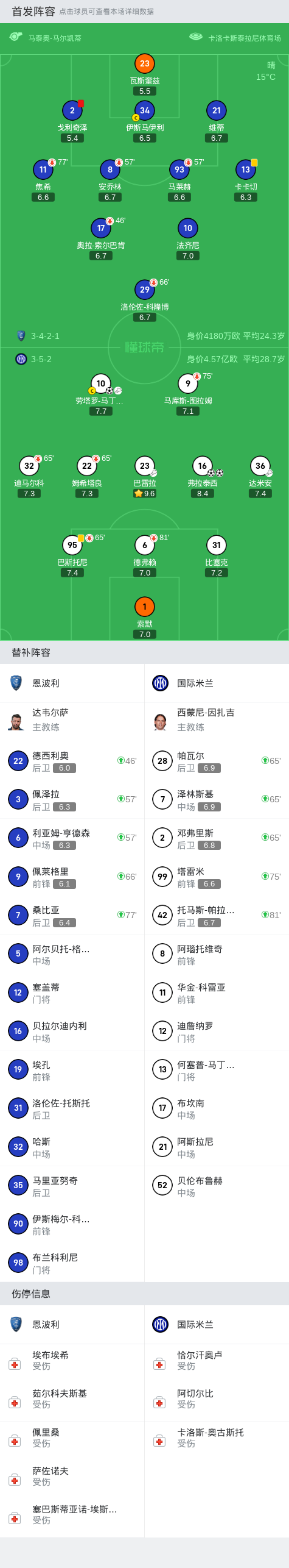 第46分钟,十人恩波利中场换人,德西利奥登场,索尔巴肯被换下