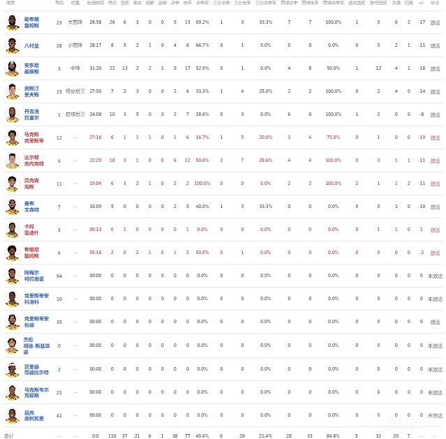 球员全场数据