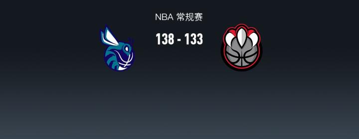 第四节黄蜂科迪-马丁拿下10分,猛龙RJ-巴雷特拿下17分,最终黄蜂138-133战胜猛龙