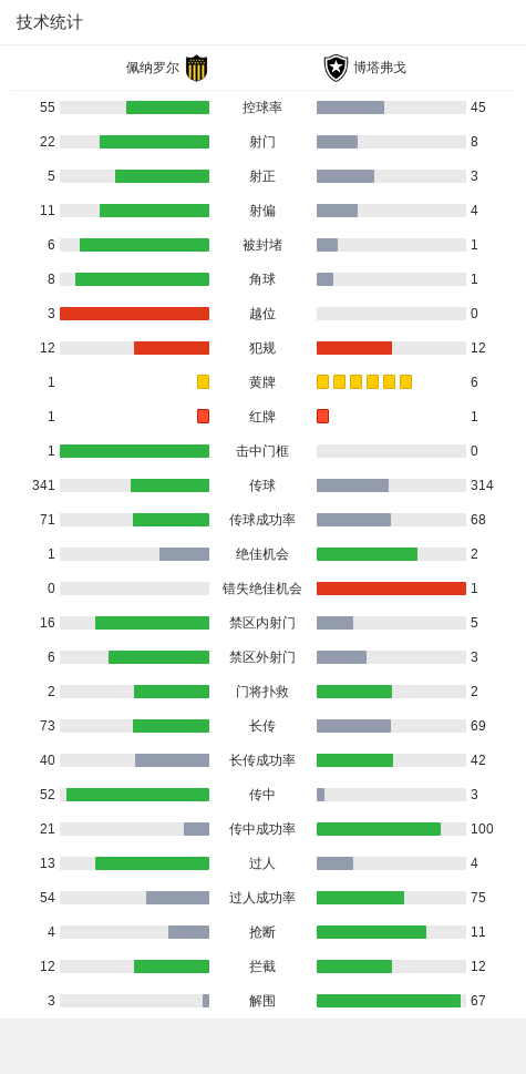 上半场补时第5分钟,佩纳罗尔球队阿格雷吃到红牌。
