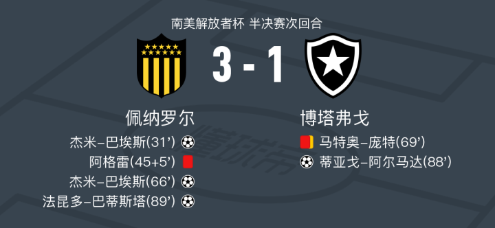 在南美解放者杯半决赛次回合的较量中,佩纳罗尔与博塔弗戈展开激烈对决。比赛中,佩纳罗尔的杰米-巴埃斯表现出色,成功打入两球,展现了他出色的进攻能力。法昆多-巴蒂斯塔也为佩纳罗尔贡献了一粒进球,进一步扩大了球队的领先优势。博塔弗戈方面,蒂亚戈-阿尔马达同样不甘示弱,为球队打入一球。最终,佩纳罗尔以3-1战胜博塔弗戈。然而,两回合总比分为3-6,博塔弗戈凭借首回合的优势晋级。