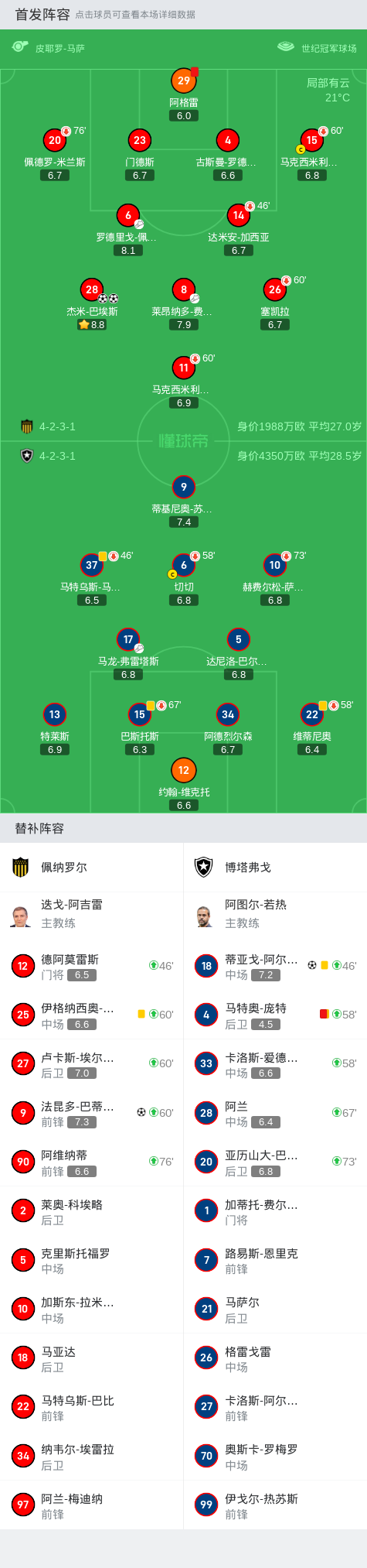 第31分钟,佩纳罗尔球员莱昂纳多-费尔南德斯助攻杰米-巴埃斯打入一球。