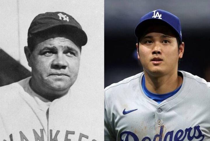 贝比-鲁斯和大谷翔平一样也是名真正的投打二刀流。22年大联盟生涯(1914-1935)中共击出714支全垒打名列历史第三,创下过单赛季54支本垒打记录,生涯123次盗垒成功。此外,他跟着洋基取得4次世界大赛冠军,在红袜取得3次世界大赛冠军。