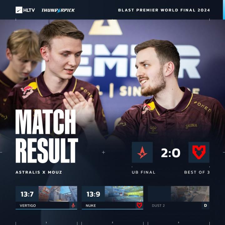 北京时间10月31日,CS2赛事BLAST世界总决赛,Astralis 2-0横扫MOUZ晋级赛事四强。
