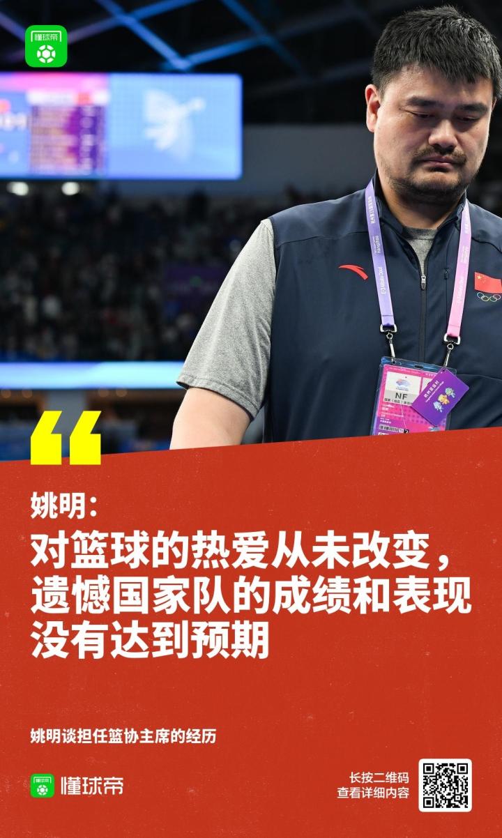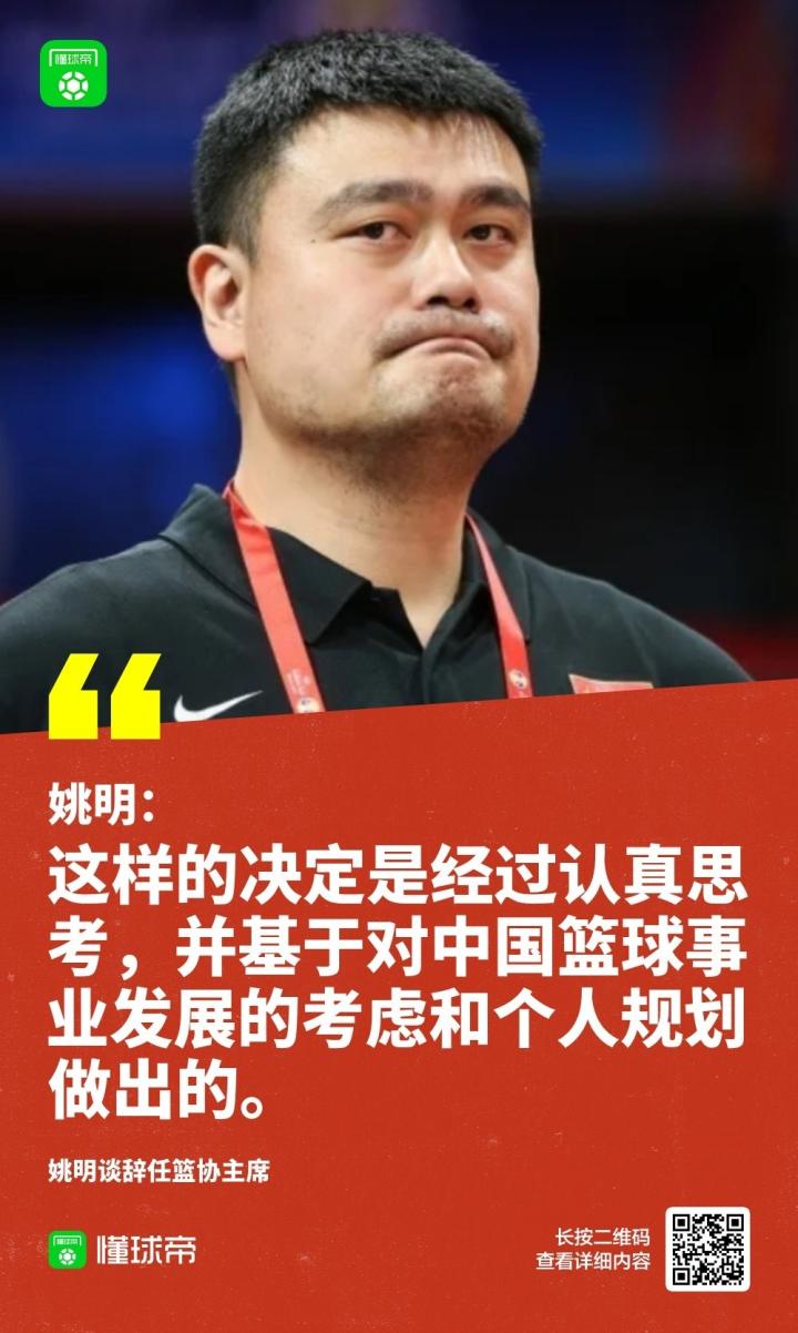 姚明谈辞职:主要基于对中国篮球未来的考虑;遗憾国家队成绩未达预期