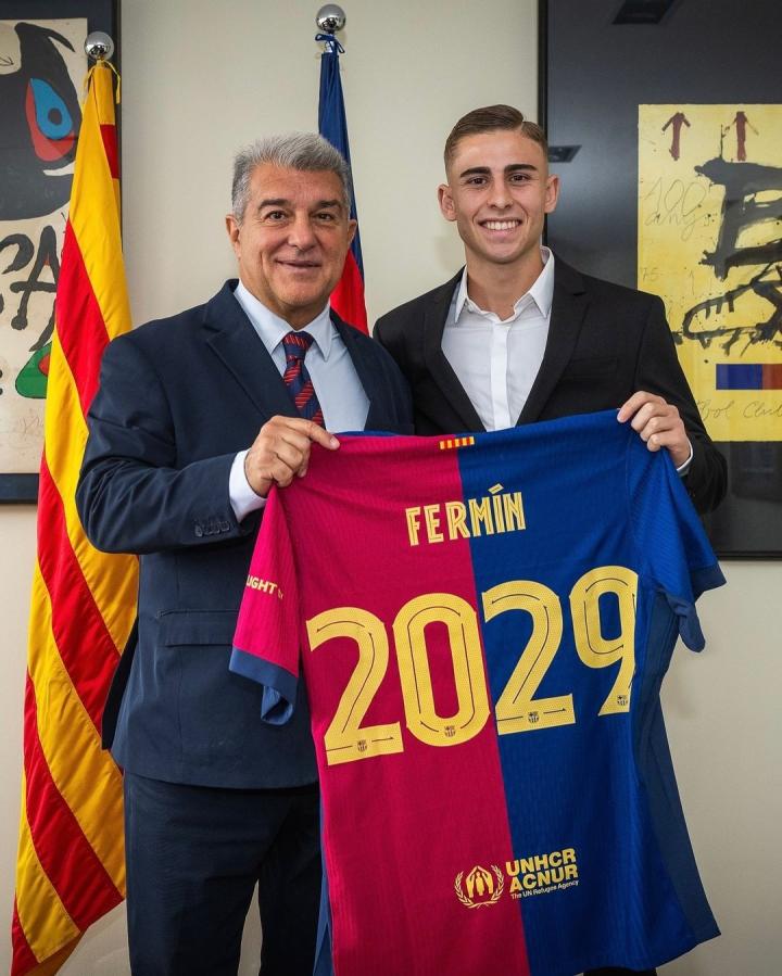 留住未来,巴萨官方晒拉波尔塔与费尔明续约合影LaPulga2024-10-31 22:02巴塞罗那今日官方宣布与费尔明-洛佩斯续约至2029年,巴萨官方晒出了拉波尔塔与费尔明的合影。费尔明-洛佩斯与巴塞罗那此前的合同在2027年到期,今日双方签订了新合同至2029年6月30日,同时费尔明-洛佩斯的解约金也提升到了5亿欧元。巴萨官方晒出了主席拉波尔塔与费尔明-洛佩斯的合影照片,费尔明-洛佩斯目前的身价为5000万欧元。展开更多