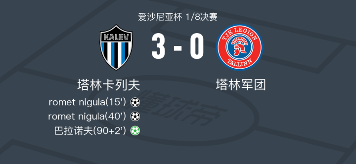 塔林卡列夫3-0大胜塔林军团,romet nigula梅开二度,巴拉诺夫点射破门