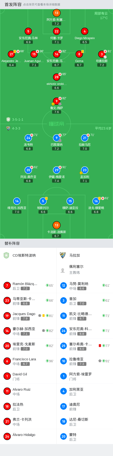 CD埃斯特波纳3-2逆转马拉加,Jacques Dago替补1射1传,豪尔赫-加西亚建功