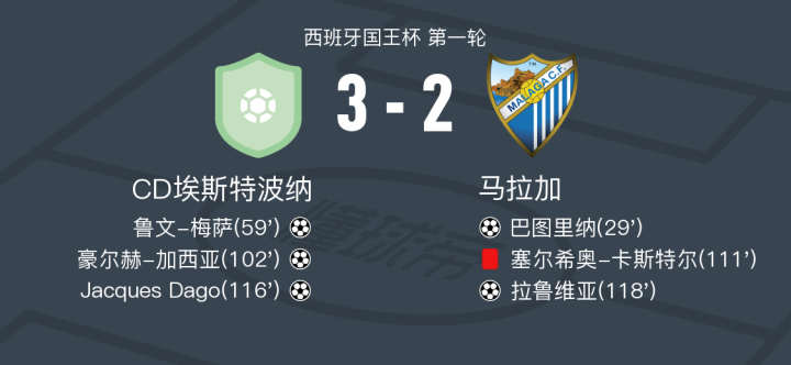 第118分钟,马拉加球员普加助攻拉鲁维亚打入一球。