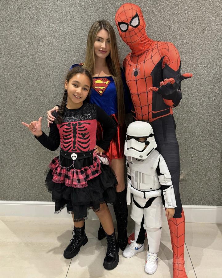 蜘蛛侠+女超人,卡塞米罗晒一家四口万圣节装扮ETChalmers @懂球帝2024-11-01 06:12当地时间10月31日,曼联中场卡塞米罗晒出一家四口的万圣节装扮。正值万圣节,卡塞米罗一家四口身穿万圣节装扮,这位曼联中场在社交媒体晒出照片并祝大家节日快乐。照片中卡塞米罗打扮成蜘蛛侠,穿着经典的红黑蜘蛛侠紧身服,带着蜘蛛侠的面罩,妻子扮作女超人,女儿穿着带有骷髅图案的连衣裙,儿子则装扮成了《星球大战》里的冲锋队士兵,充满了节日气氛。展开更多