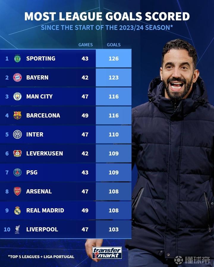 (图)滕哈格麾下的曼联不会进球,阿莫里姆的葡萄牙体育拥有欧洲最强火力,梦剧场即将变天。