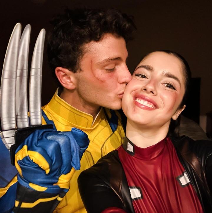 当地时间10月31日,Madalena Aragão在社交媒体晒出她和若昂-内维斯一起过万圣节的照片,照片中她和内维斯扮成死侍和金刚狼,内维斯亲吻了她的脸颊。