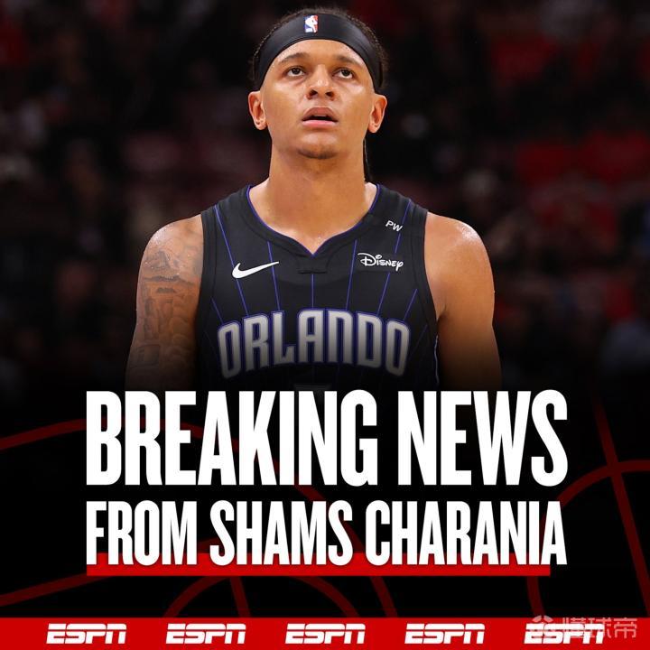 据NBA名记Shams报道,奥兰多魔术队当家球星保罗-班凯罗被诊断为右斜肌撕裂,将无限期休战。