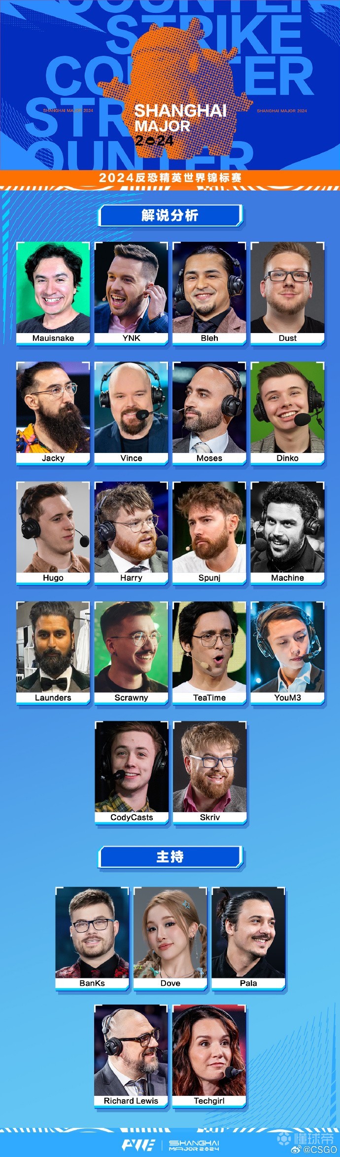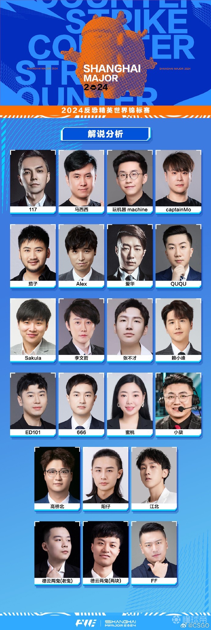 上海Major官方解说阵容:玩机器、csboy、QUQU等人在列