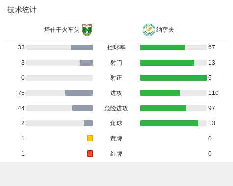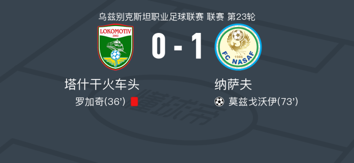 在乌兹别克斯坦职业足球联赛第23轮的较量中,塔什干火车头坐镇主场迎战纳萨夫。比赛中,塔什干火车头的罗加奇被罚出场,给球队带来了不小的挑战。随后,纳萨夫的博佐罗夫送出精妙传球,助攻莫兹戈沃伊成功破门,帮助球队取得领先。最终,纳萨夫凭借这一进球,以1比0战胜塔什干火车头,取得了比赛的胜利。