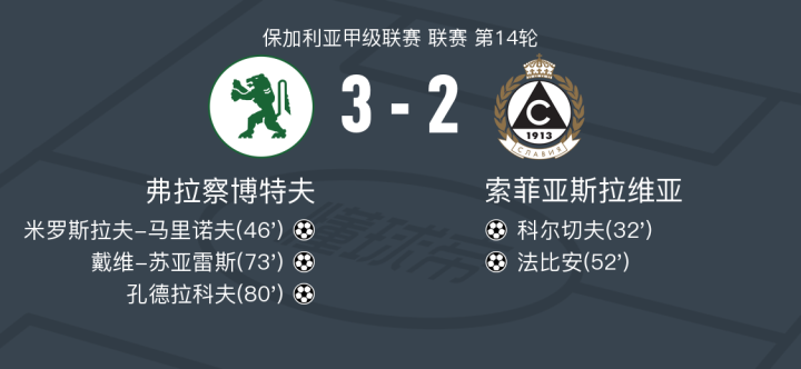 第46分钟,弗拉察博特夫球员米罗斯拉夫-马里诺夫打入一球。