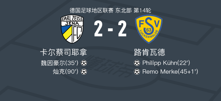 卡尔蔡司耶拿2-2路肯瓦德,Philipp Kühn打破僵局,灿克救主