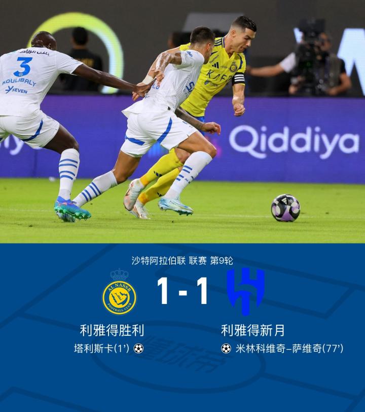利雅得胜利1-1利雅得新月,塔利斯卡闪击,米林科维奇扳平