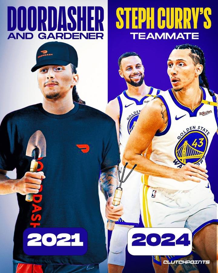 他所在的半职业球队赢得了总冠军,他也接到了参加G联盟球队试训的电话。在2022年,他与雷霆队签订了一份双向合同。时间快进到2024年6月,勇士队在选秀日交易得到了他。