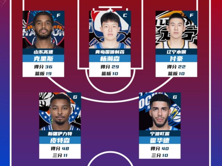 11月2日,CBA联赛官方公布常规赛第9轮最佳阵容,青岛男篮内线杨瀚森和辽宁男篮内线付豪入选,一同入围的还有宁波外援霍华德、新疆外援皮特森和山东外援克里斯。