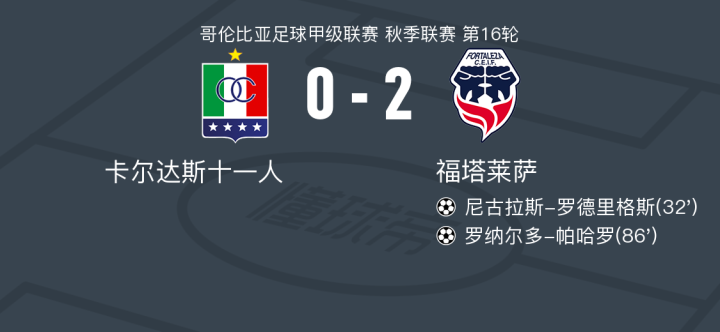 在哥伦比亚足球甲级联赛秋季联赛第16轮的较量中,卡尔达斯十一人坐镇主场迎战福塔莱萨。比赛中,福塔莱萨的尼古拉斯-罗德里格斯在伊万-安德森的助攻下成功破门,为球队首开纪录。随后,罗纳尔多-帕哈罗再下一城,进一步扩大了领先优势。最终,福塔莱萨以2比0战胜卡尔达斯十一人,取得了本场比赛的胜利。