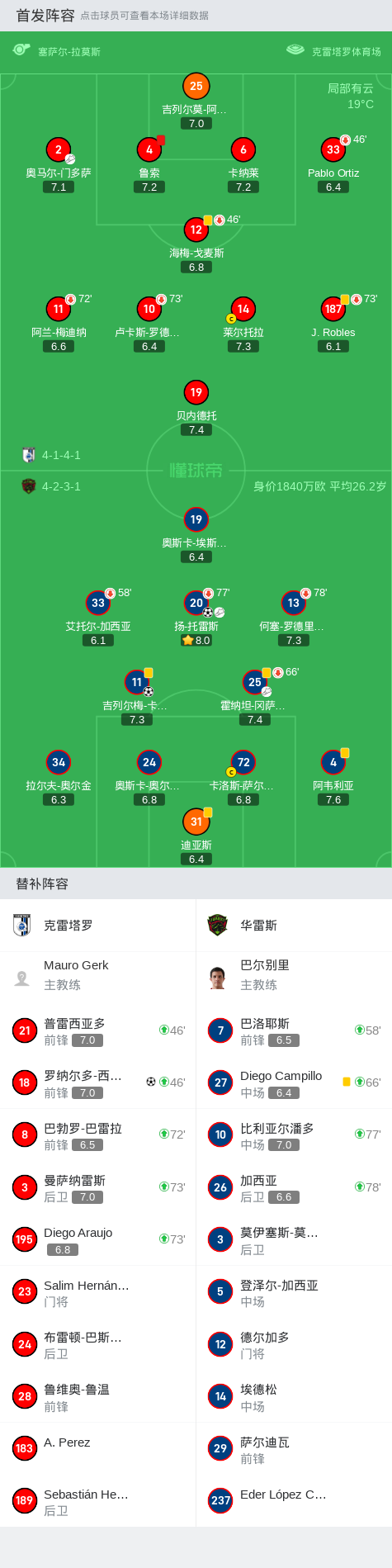 华雷斯2-1克雷塔罗,吉列尔梅-卡斯蒂略建功,扬-托雷斯1射1传