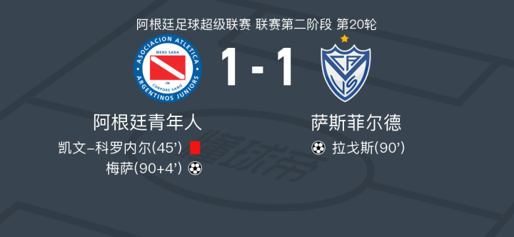 阿根廷青年人1-1萨斯菲尔德,拉戈斯破僵,梅萨扳平比分