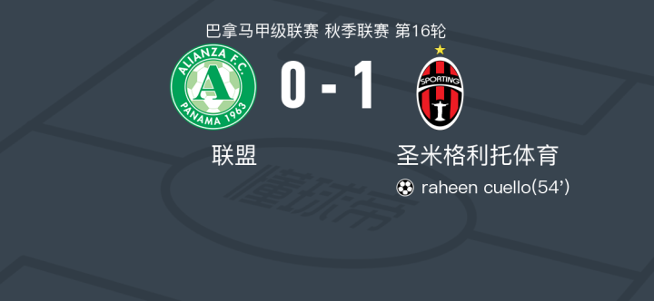 在巴拿马甲级联赛秋季联赛第16轮的较量中,联盟队坐镇主场迎战圣米格利托体育队。比赛中,圣米格利托体育的raheen cuello成功破门,为球队取得领先。最终,圣米格利托体育以1比0小胜联盟队,取得了本场比赛的胜利。