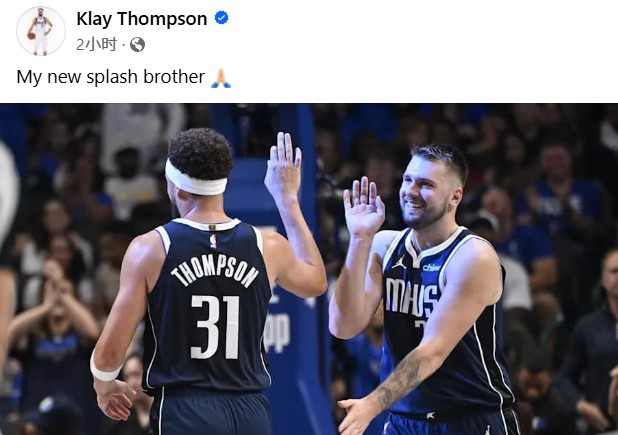 北京时间11月2日,达拉斯独行侠队球员克莱-汤普森更新个人社媒,发布了与东契奇的合照,并配文道:“我的新水花兄弟。”