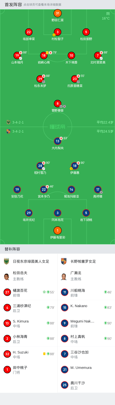 日视东京绿茵美人女足5-1大胜长野帕塞罗女足,菅野奏音双响,樋渡百花点射
