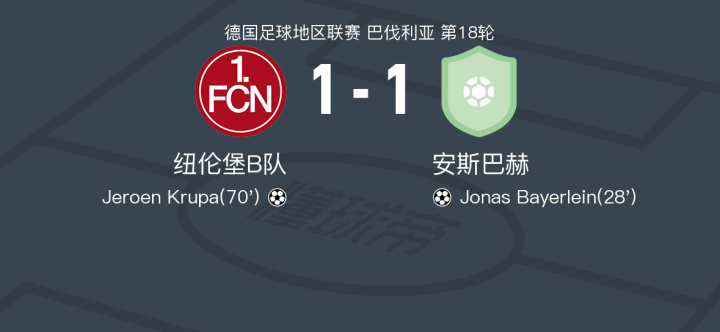 纽伦堡B队1-1安斯巴赫,Jonas Bayerlein打破僵局,Jeroen Krupa扳平比分