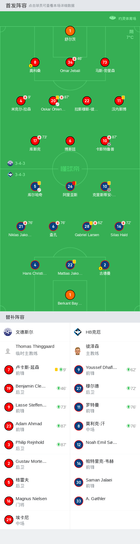 第64分钟,文德斯尔球员Oskar Öhlenschlaeger助攻卡斯特鲁普打入一球。