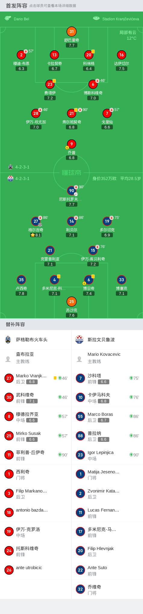 第32分钟,斯拉文贝鲁波球员尼斯托罗夫斯基助攻格尔吉奇打入一球。