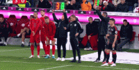 第25分钟,球队气氛不错,替补席几人谈笑风生