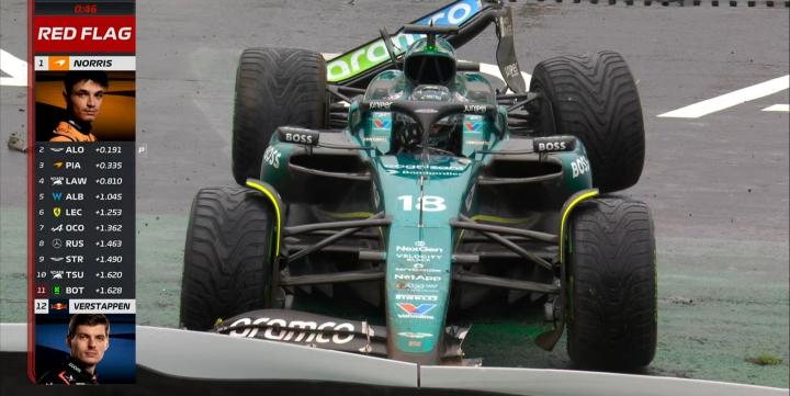 红旗×3!斯特罗尔在3号弯Spin上墙,Q2再次暂停!