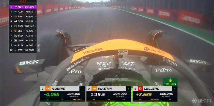 赛道的状况在不断演进,诺里斯两段刷紫保持第1,奥康上到第3!