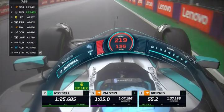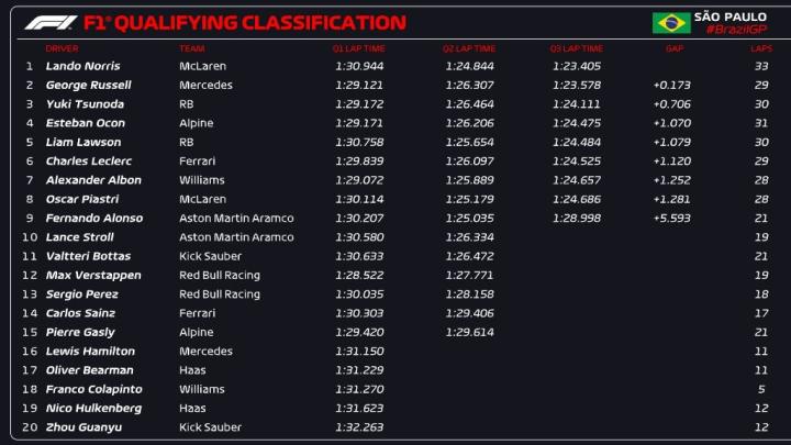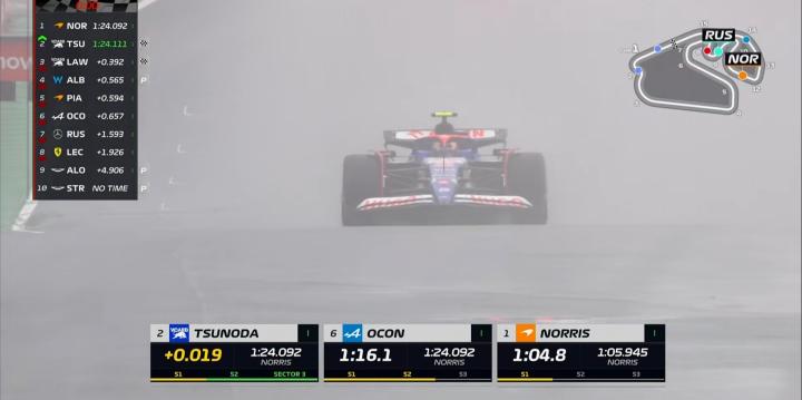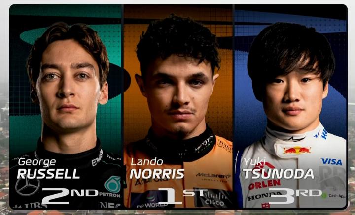 第1-第5:诺里斯、拉塞尔、角田裕毅、奥康、劳森