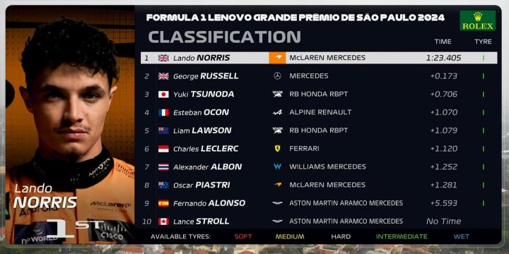 5次红旗!F1巴西站排位赛:诺里斯夺杆,角田P3,维斯塔潘P12