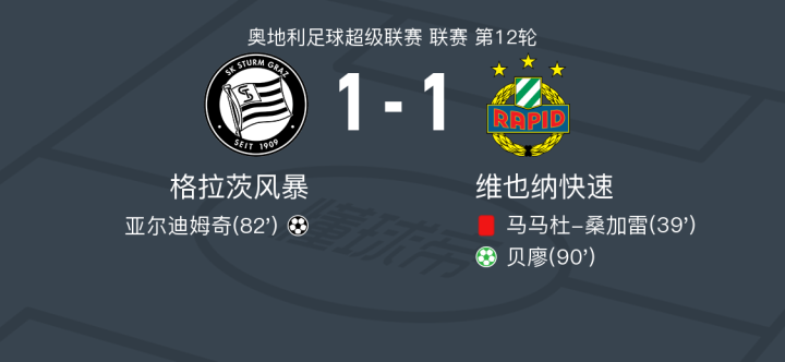 格拉茨风暴1-1维也纳快速,亚尔迪姆奇破门,贝廖扳平