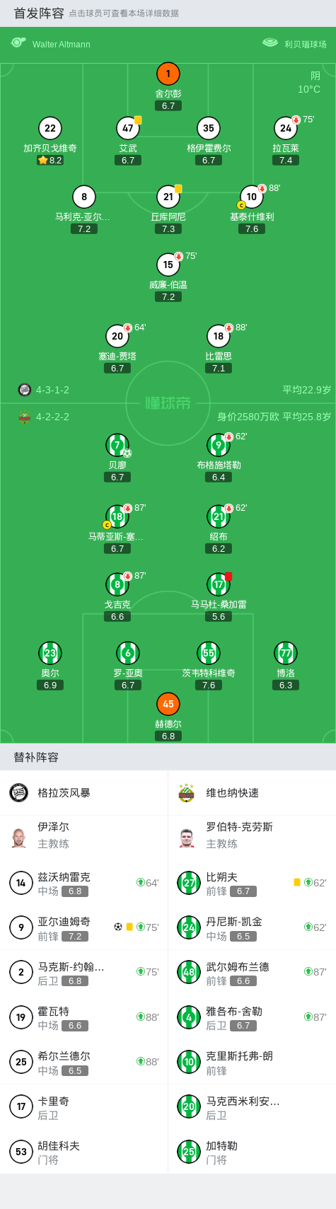 第82分钟,格拉茨风暴球员马克斯-约翰斯顿助攻亚尔迪姆奇打入一球。
