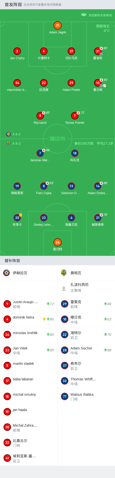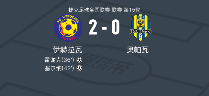伊赫拉瓦2-0奥帕瓦,霍谢克破门,塞尔纳锁定胜局