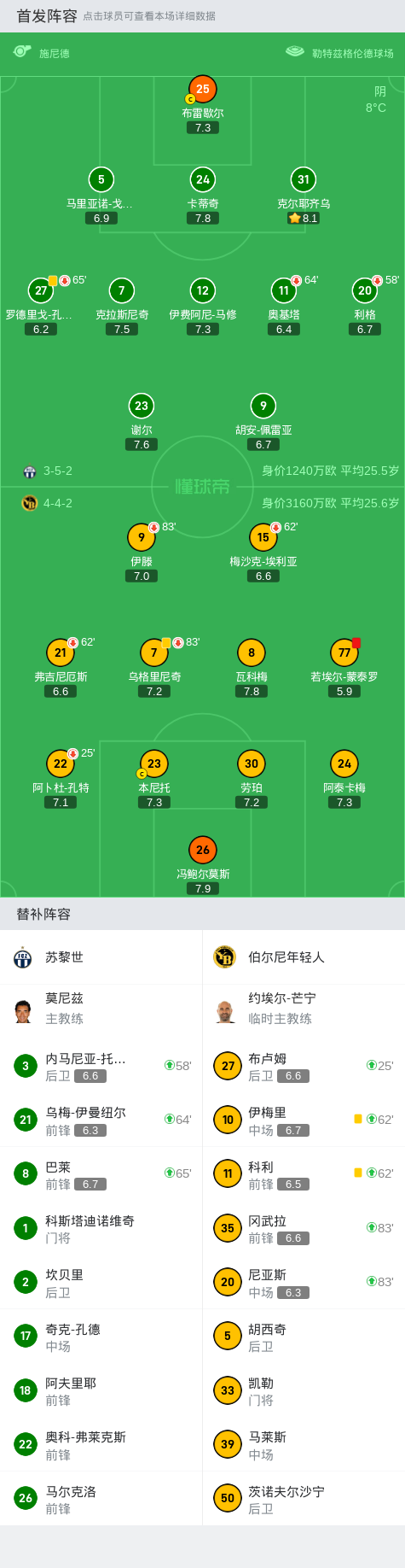 第79分钟,伯尔尼年轻人球队若埃尔-蒙泰罗吃到红牌。