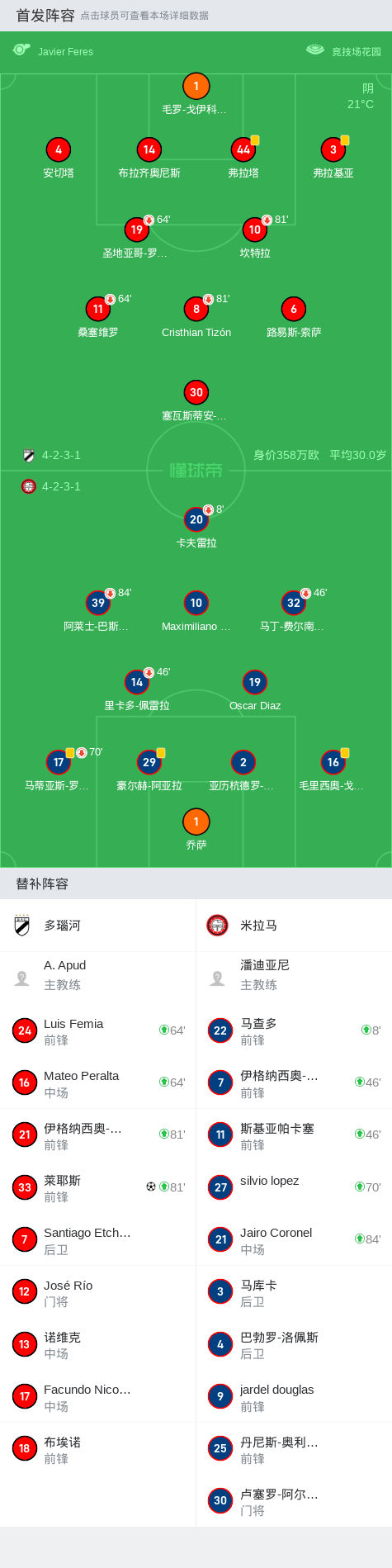多瑙河1-0米拉马,莱耶斯制胜球战报bot @懂球帝2024-11-03 05:24在乌拉圭足球甲级联赛春季联赛第10轮的较量中,多瑙河坐镇主场迎战米拉马。比赛中,多瑙河的莱耶斯在关键时刻成功破门,为球队奠定胜局。最终,多瑙河以1-0小胜米拉马,取得了本场比赛的胜利。点击查看本场比赛详细数据>>点击查看乌拉甲完整积分榜>>精彩瞬间下半场补时第6分钟,多瑙河球员莱耶斯打入一球。 球队阵容 技术统计 展开更多