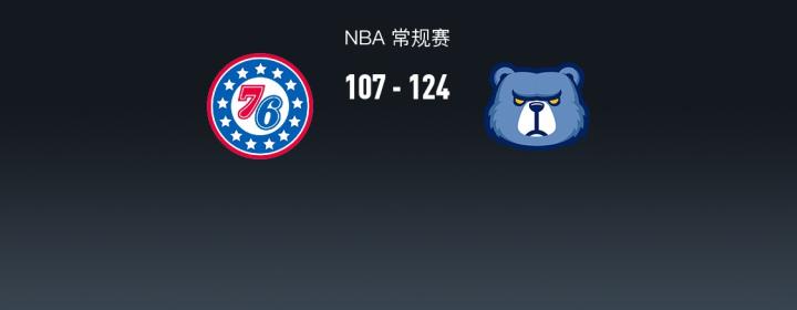 第四节76人贾里德-麦凯恩拿下17分,灰熊小贾伦-杰克逊拿下15分,最终76人107-124不敌灰熊