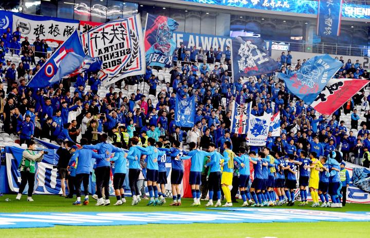 东亚足球志2024年11月2日的上海浦东足球场,当武磊用一记头球将比分扩大为5-0的时候,在另一块场地上,在成都凤凰山体育场正用手机关注着这场比赛赛果的许多申花球迷,露出了颓然的神情。