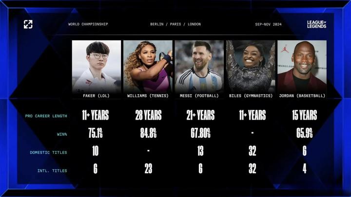 LOL官方发布Faker与体坛顶尖选手对比:梅西乔丹领衔,小威在列